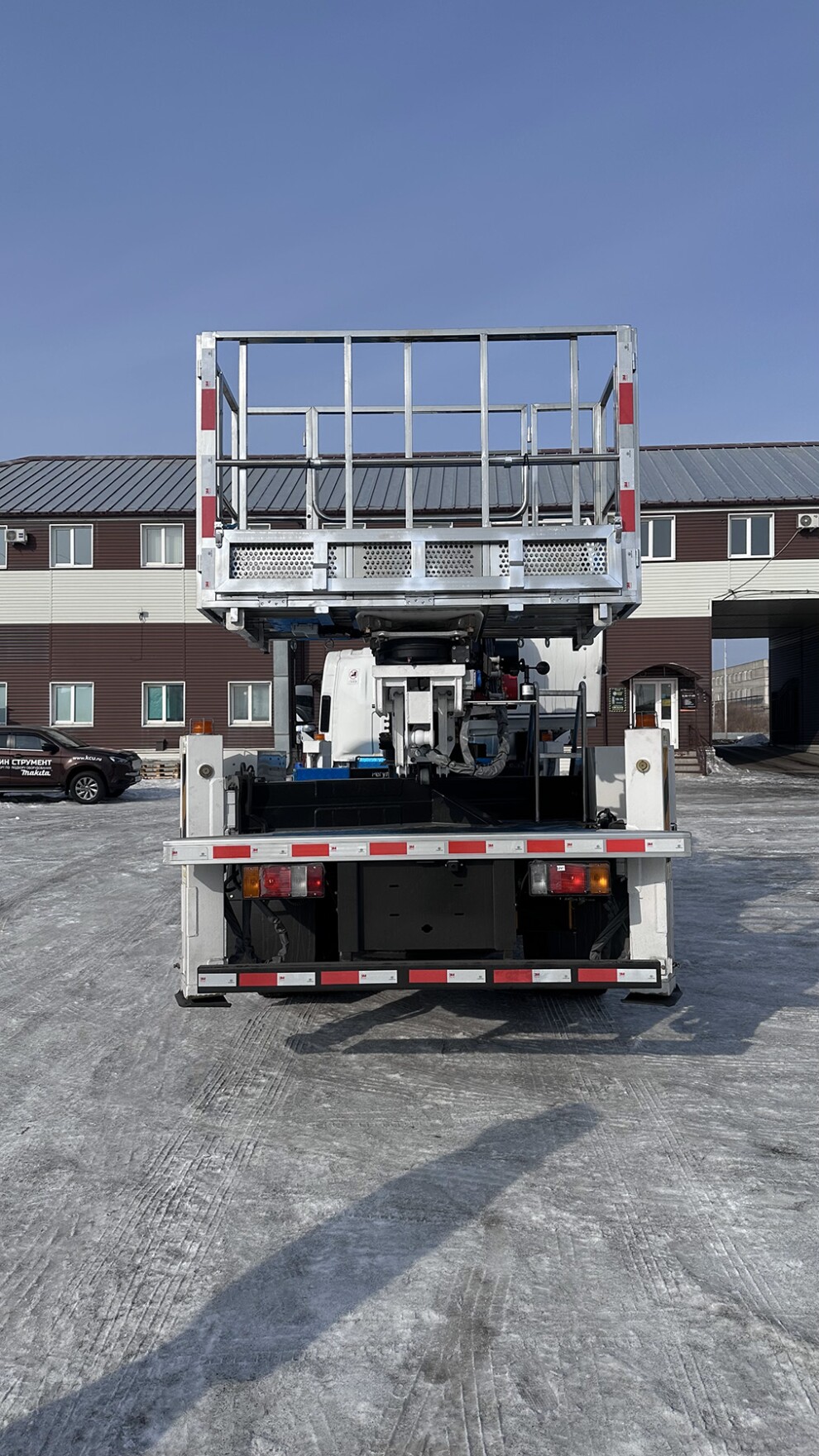 Удобен в управлении, обладает хорошей проходимостью и с максимальной рабочей высотой до 28 метров.
